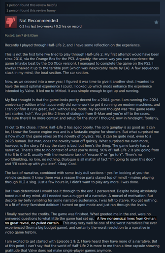 I expected a really bad take, but this is not it. HL2 has strength, but the story is not it. It’s okay, but I want you to remember that the ending of HL2 is just not good - neither to ‘boss fight’ nor the deus ex machina ending.
