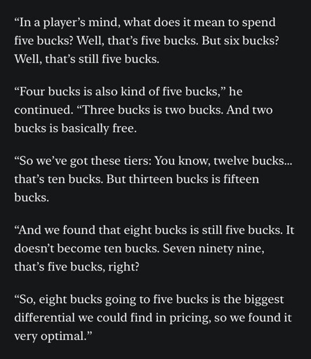 Then I’d have to also tell you to never play a game or buy a product ending in 99 cents. Getting into the mind of the consumer is business 101 and is literally the difference between a game/product having any success or not.